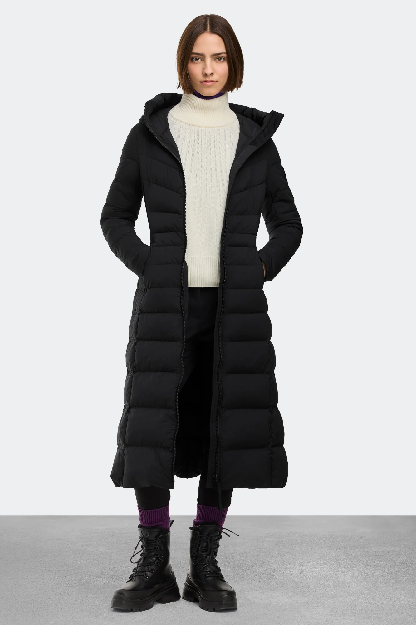 The Clair Long Coat is made with Aira®a two-way stretch fabric with a matte finish that's designed to move with you. With an effortless silhouette, a mid-calf length and ultra-flattering chevron quilting, the Clair will be your new favourite staple.
